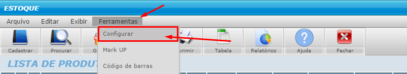 Logo após acessar, selecione a opção ‘FERRAMENTAS’, na parte superior da tela, e depois ‘CONFIGURAR’