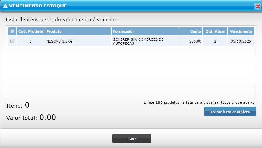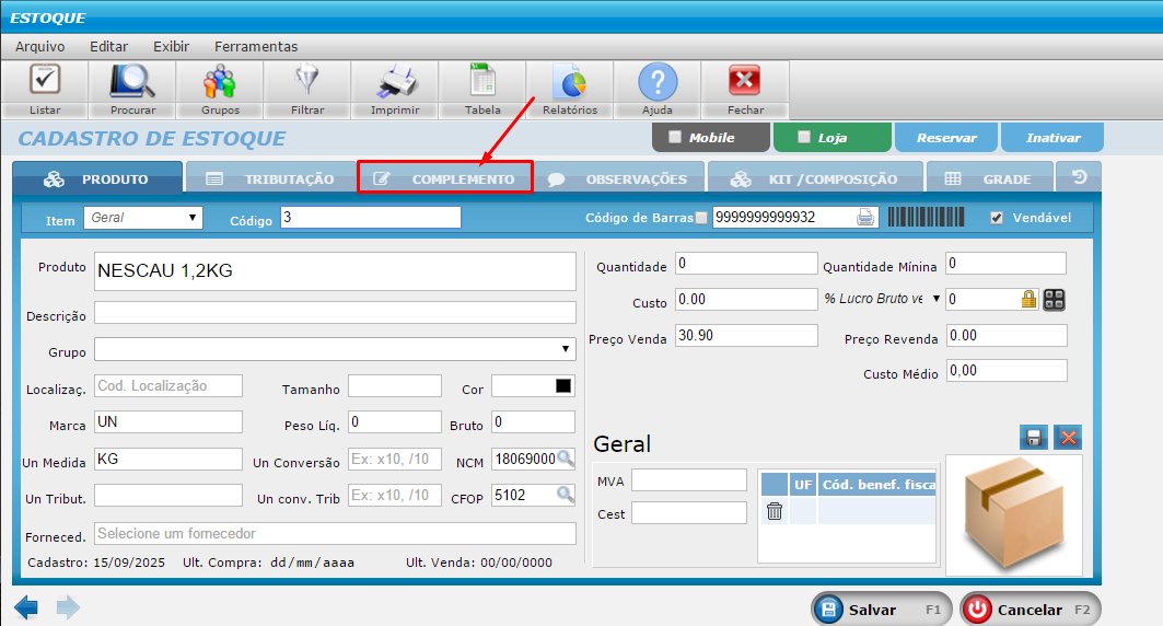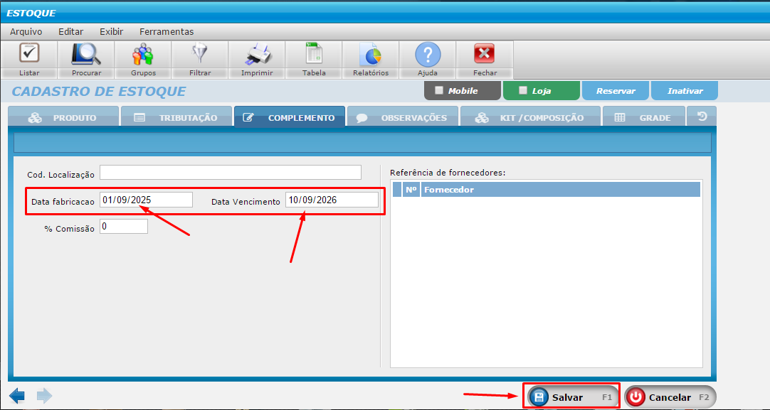Importante informar que esse preenchimento não é obrigatório, e sim apenas para utilização da informação para um controle de vencimento dos produtos em estoque.