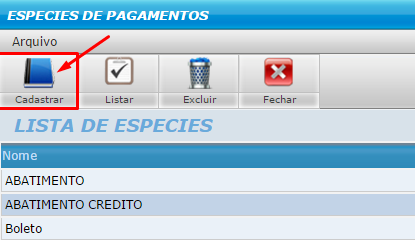 COMO CADASTRAR ESPÉCIE DE PAGAMENTO
