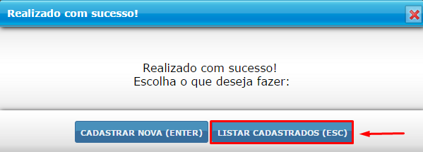 - ‘LISTAR CADASTRADOS’, retorna à tela com todos os cadastros.