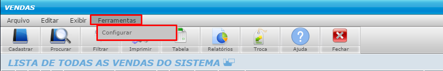 Siga para a aba ‘FERRAMENTAS’ e clique na opção ‘CONFIGURAR’